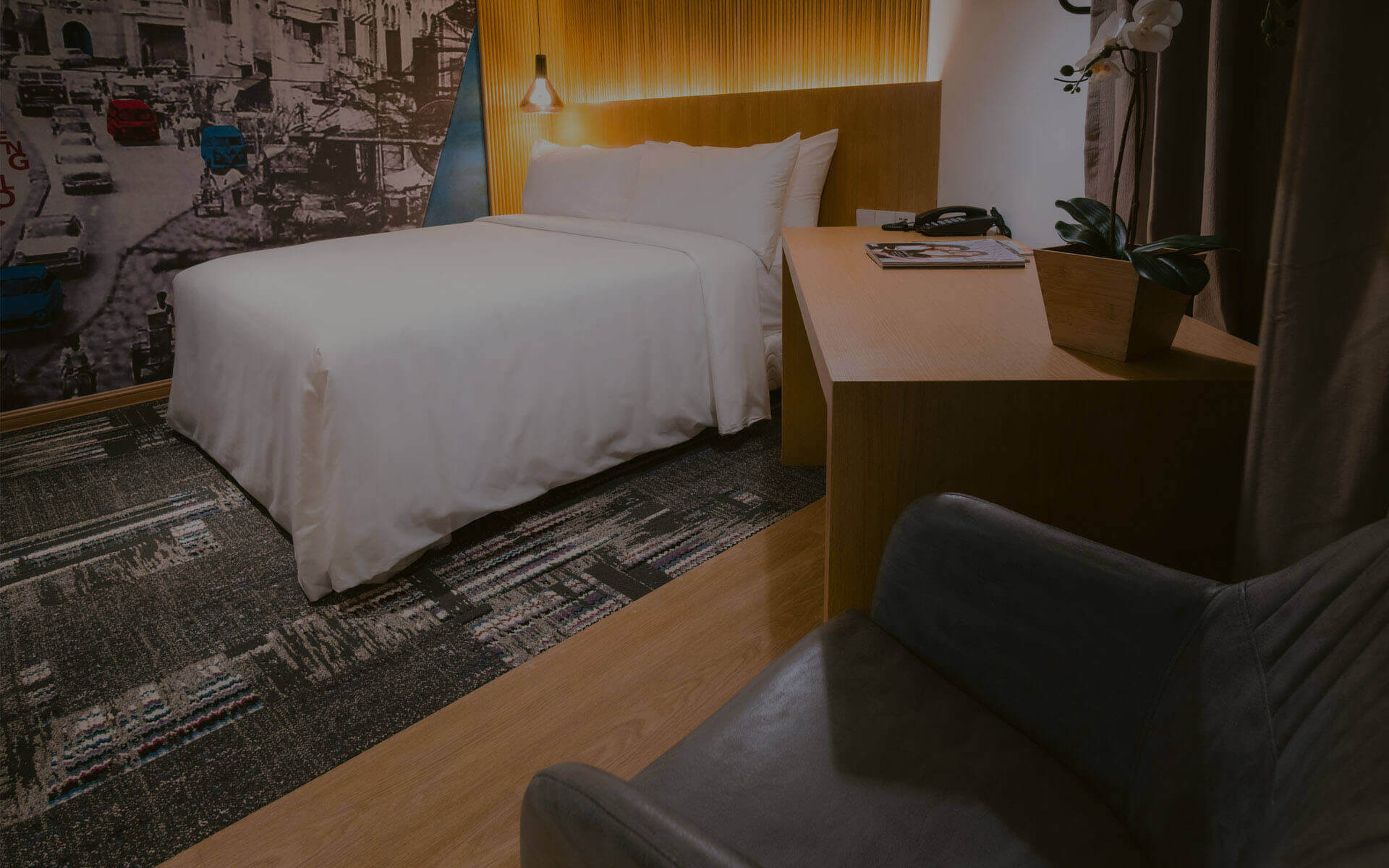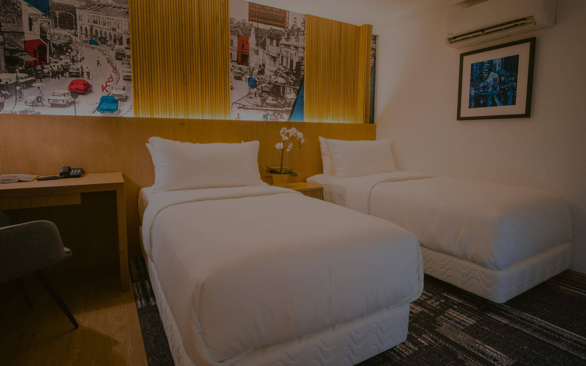 Featuring two Super Single Beds with window. Rooms offer wireless internet access, minibar, coffee & tea making facilities, iron with board, hair dryer, 40-inch LED flat screen TV with premium channels, glass enclosed standing shower, in-room safe, large work desk with ergonomic chair and luxurious pillow top beds.